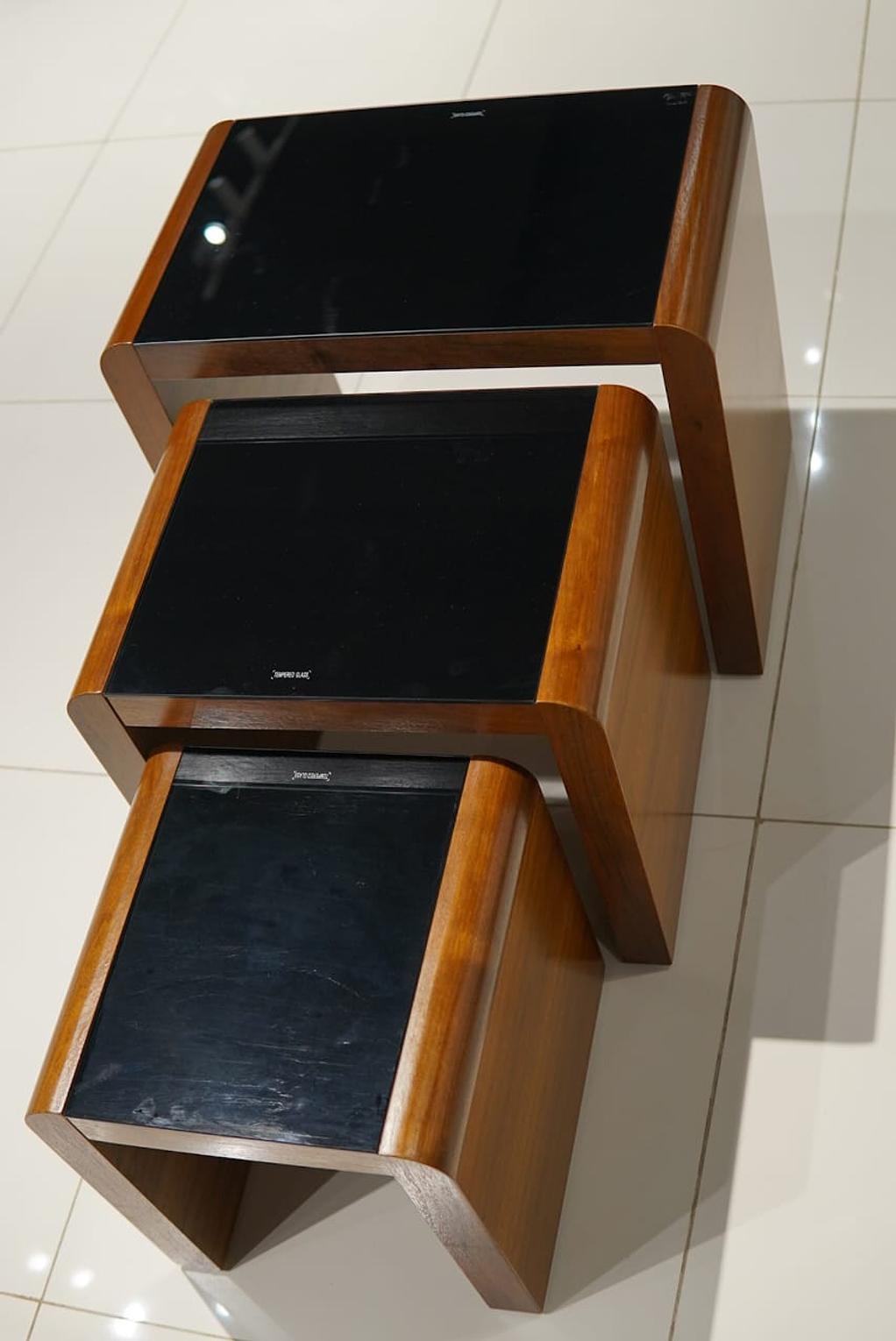Nested Stool Set with Tempered Glass